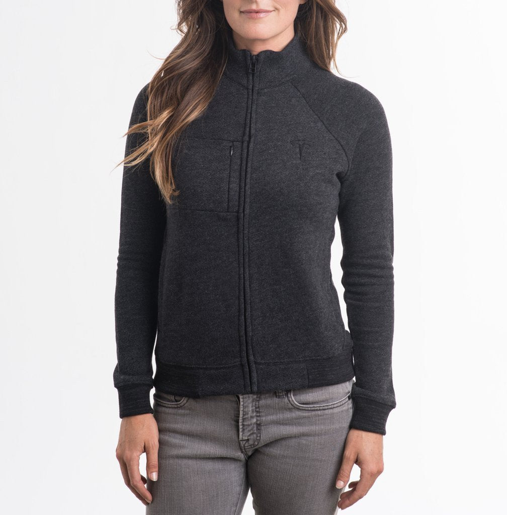 A fleece mock neck jacket with pockets made from organic cotton. The Somerset Jacket is named after a Tesla Supercharger location in Pennsylvania.